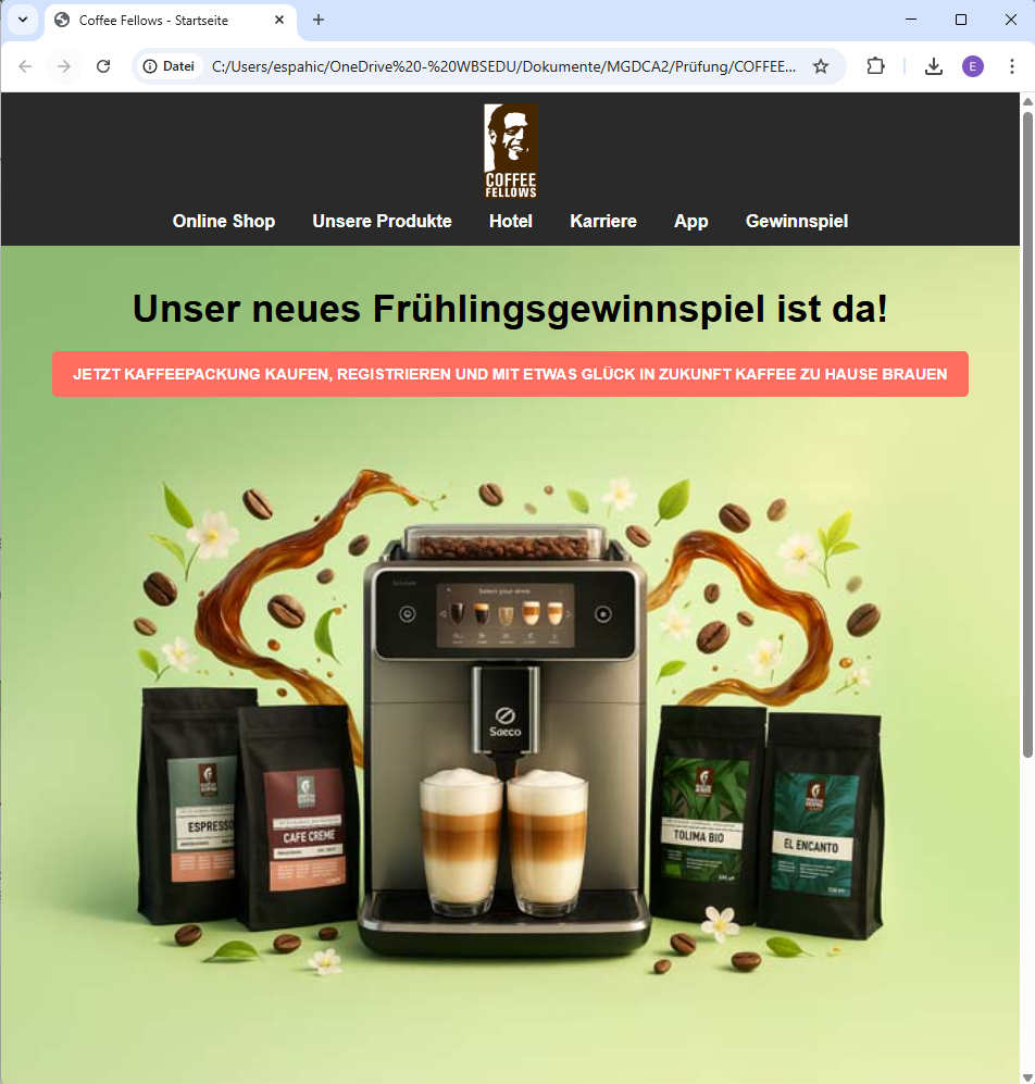 Dieses Projekt wurde ausschließlich zu Übungszwecken erstellt und steht in keinem geschäftlichen Zusammenhang mit Coffee Fellows.