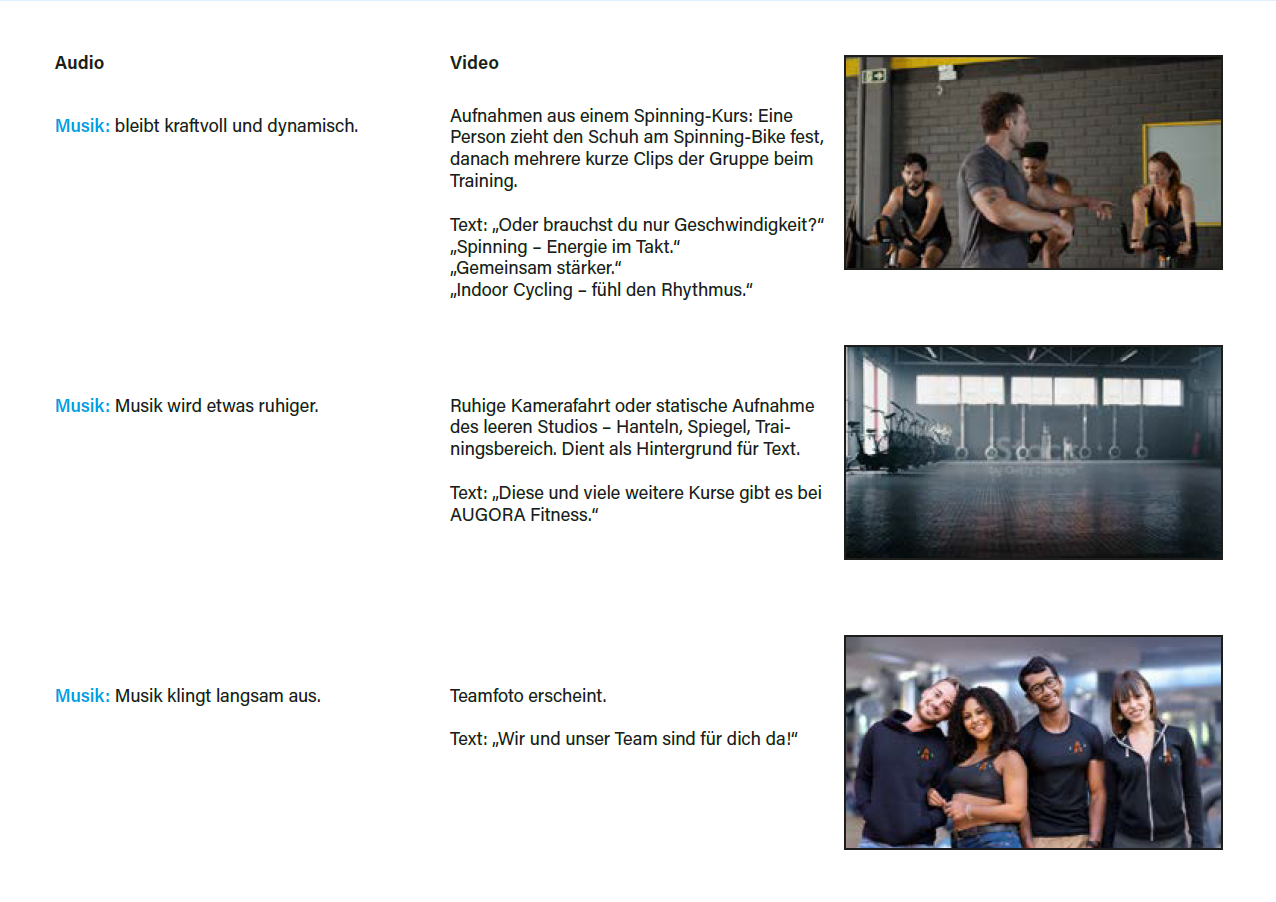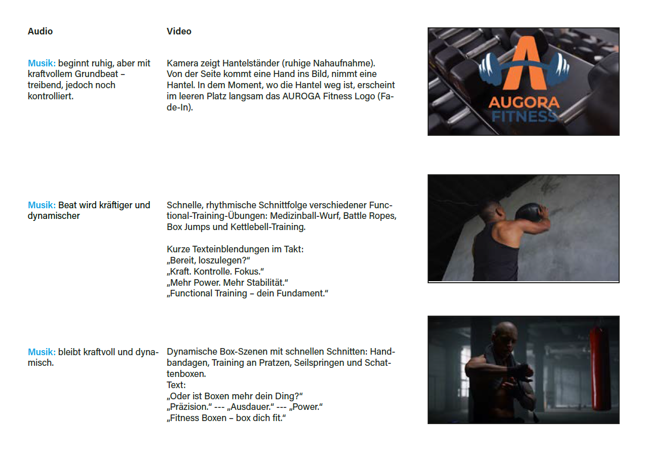 - Entwicklung eines Storyboards zur Planung des Imagefilms